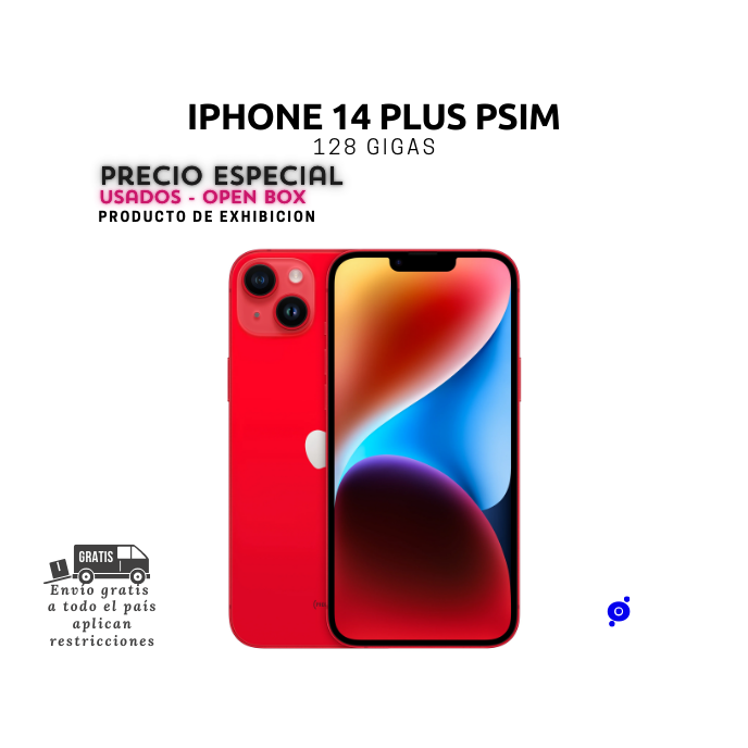 Como producto de exhibición, el iPhone 14 Plus PSIM de 128 GB se presenta en condiciones óptimas, brindando la oportunidad de disfrutar de un smartphone premium a un precio competitivo. ¡No te pierdas esta increíble oferta!